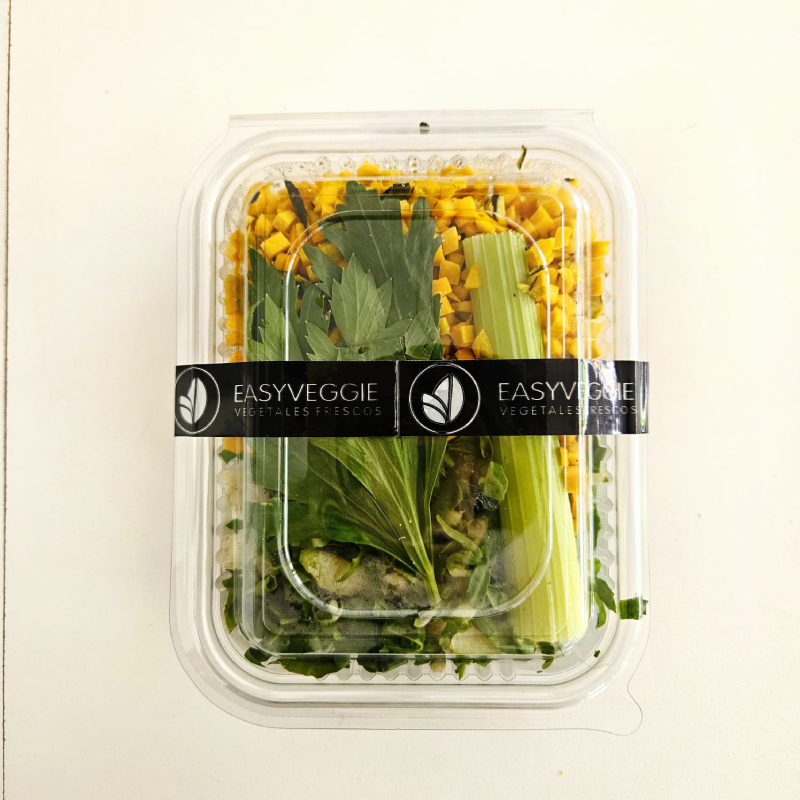 Una mezcla nutritiva y reconfortante de vegetales frescos, ideal para preparar una sopa casera en minutos. Contiene zanahoria, zapallo calabaza y zapallo cabuto cortados en cubos, con una terminación de acelga cortada tipo colchón, que aporta textura y color en el último momento de cocción.